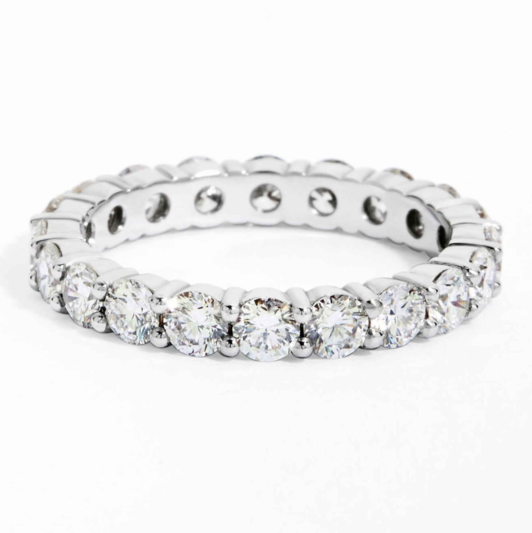 A timeless eternity ring in polished white gold, set all around with round brilliant diamonds for uninterrupted sparkle from every angle. The clean, classic silhouette makes it ideal worn solo as a statement band, stacked with other rings, or paired with an engagement ring for a brighter, more elevated look—an enduring choice for anniversaries, milestones, or everyday diamond luxury.