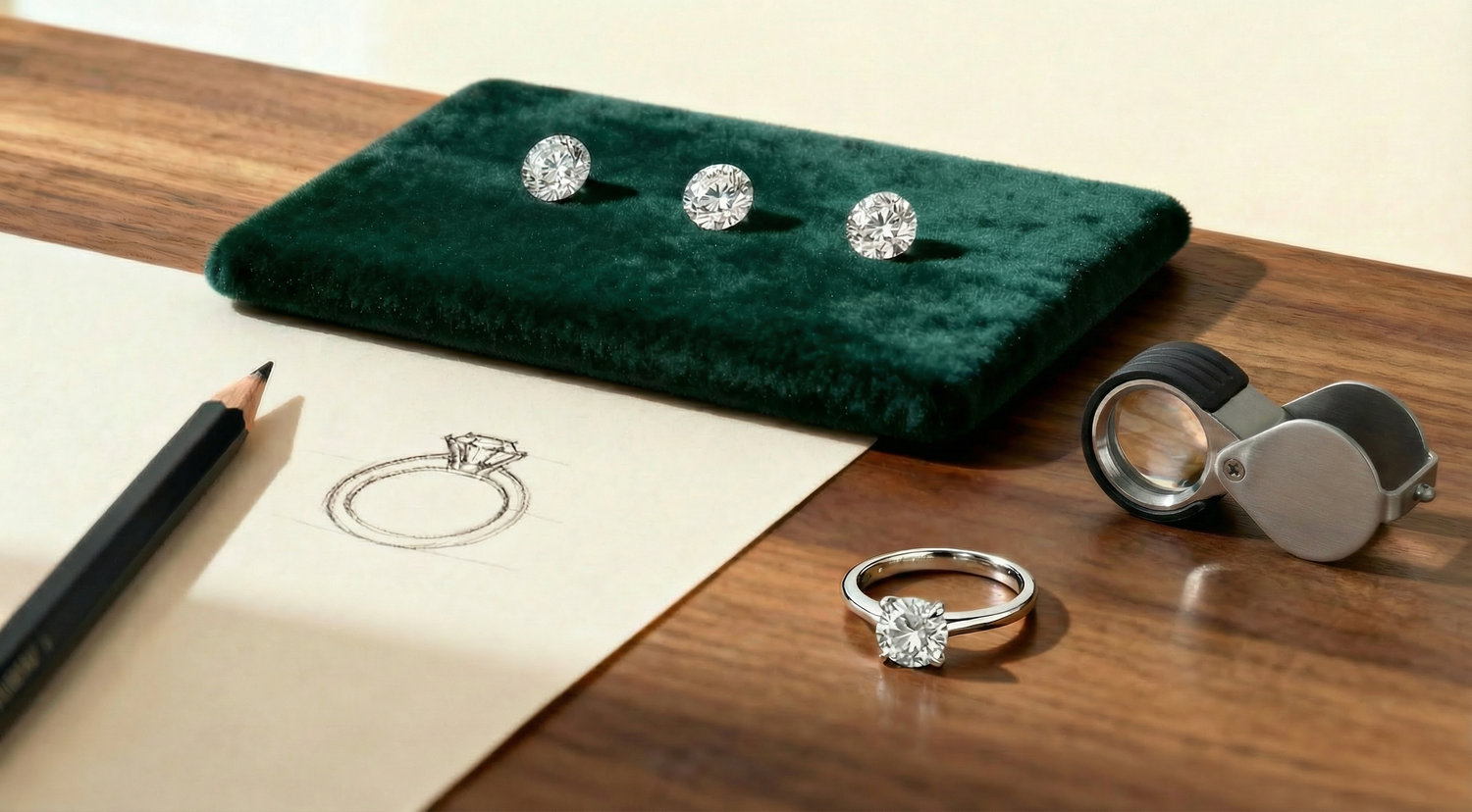 We create jewelry for those who believe true diamond luxury should feel intimate, assured, and timeless: exceptional stones, transparent guidance, and impeccable craftsmanship in every detail.