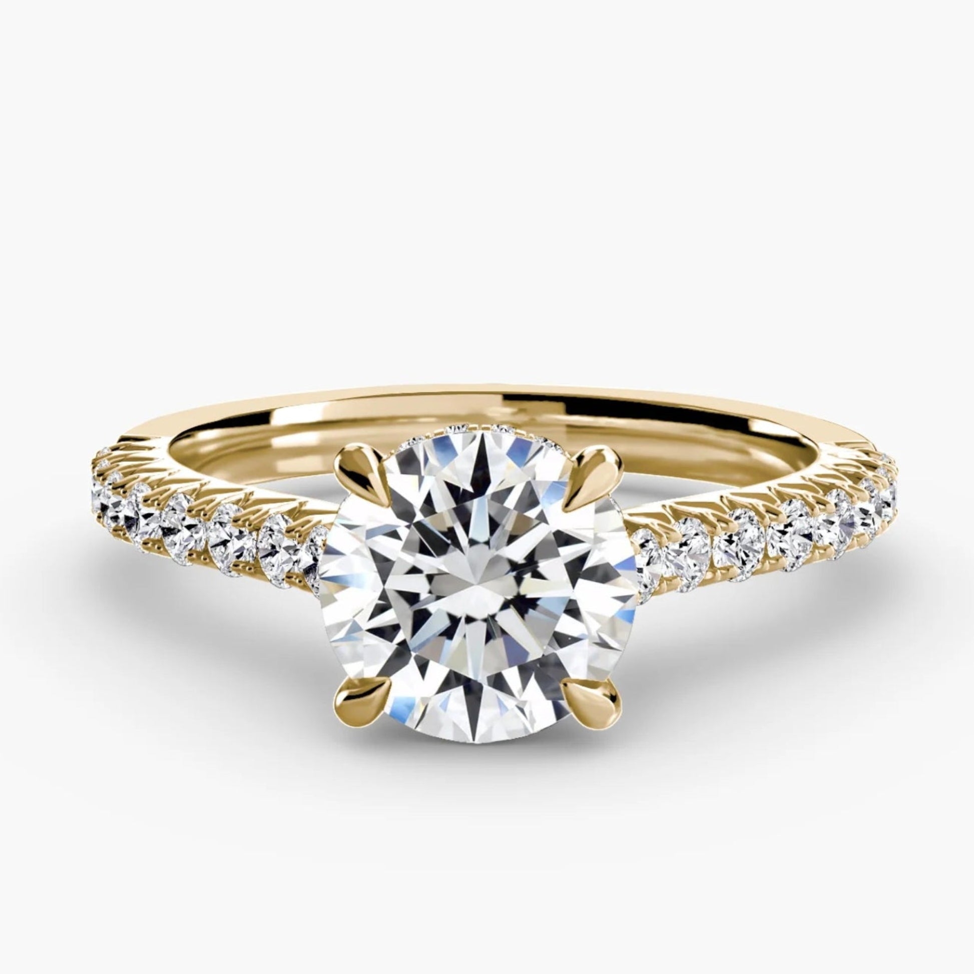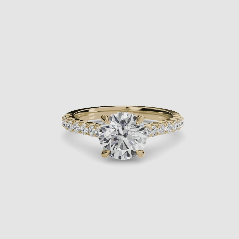 A timeless solitaire ring enhanced by a pavé-set band, combining classic elegance with a touch of sparkle for everyday luxury.