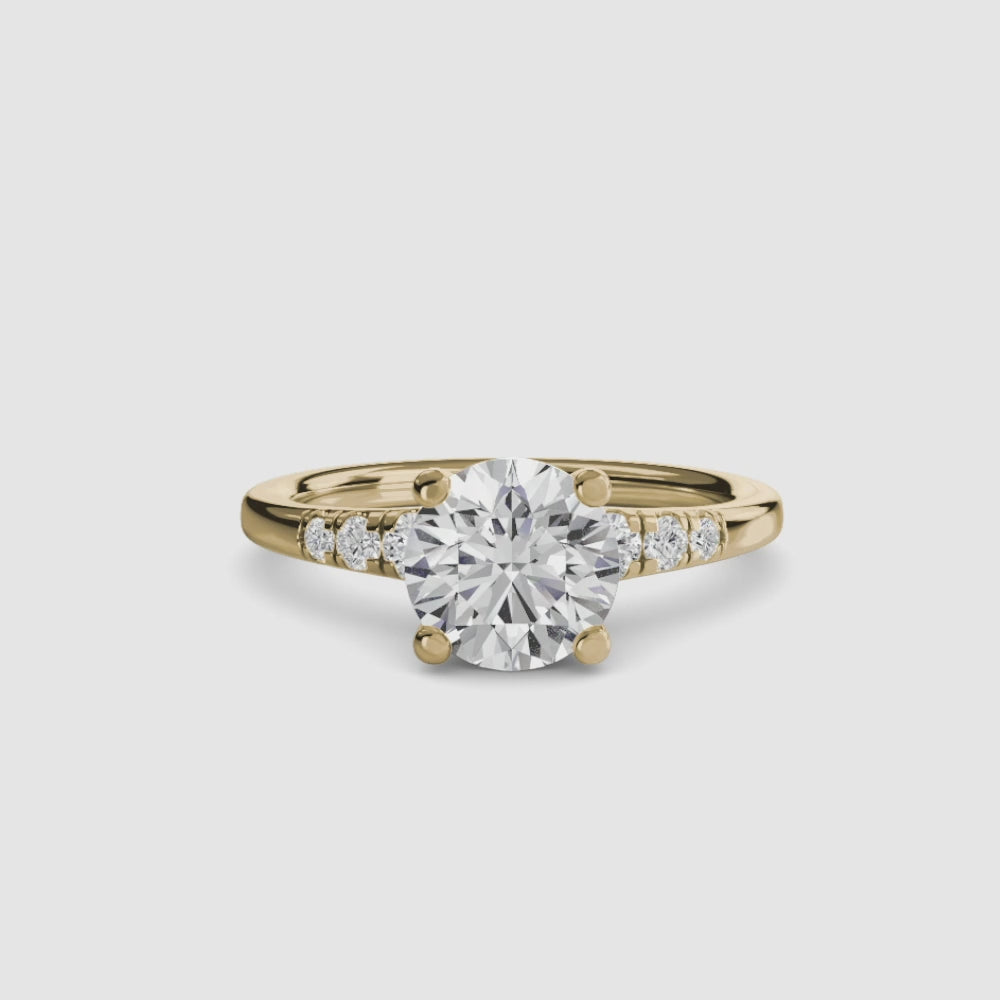 Solitaire with Shoulder Accents Round in Yellow Gold