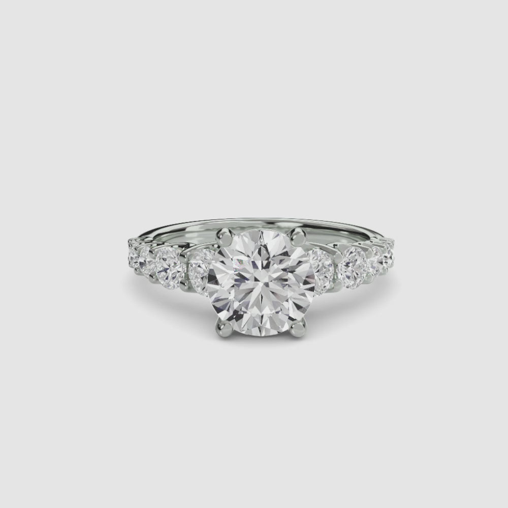 Designed with side stones that gracefully complement the center stone, this ring strikes a balance between classic elegance and added brilliance. Perfect for those who want a refined look with just the right amount of sparkle.