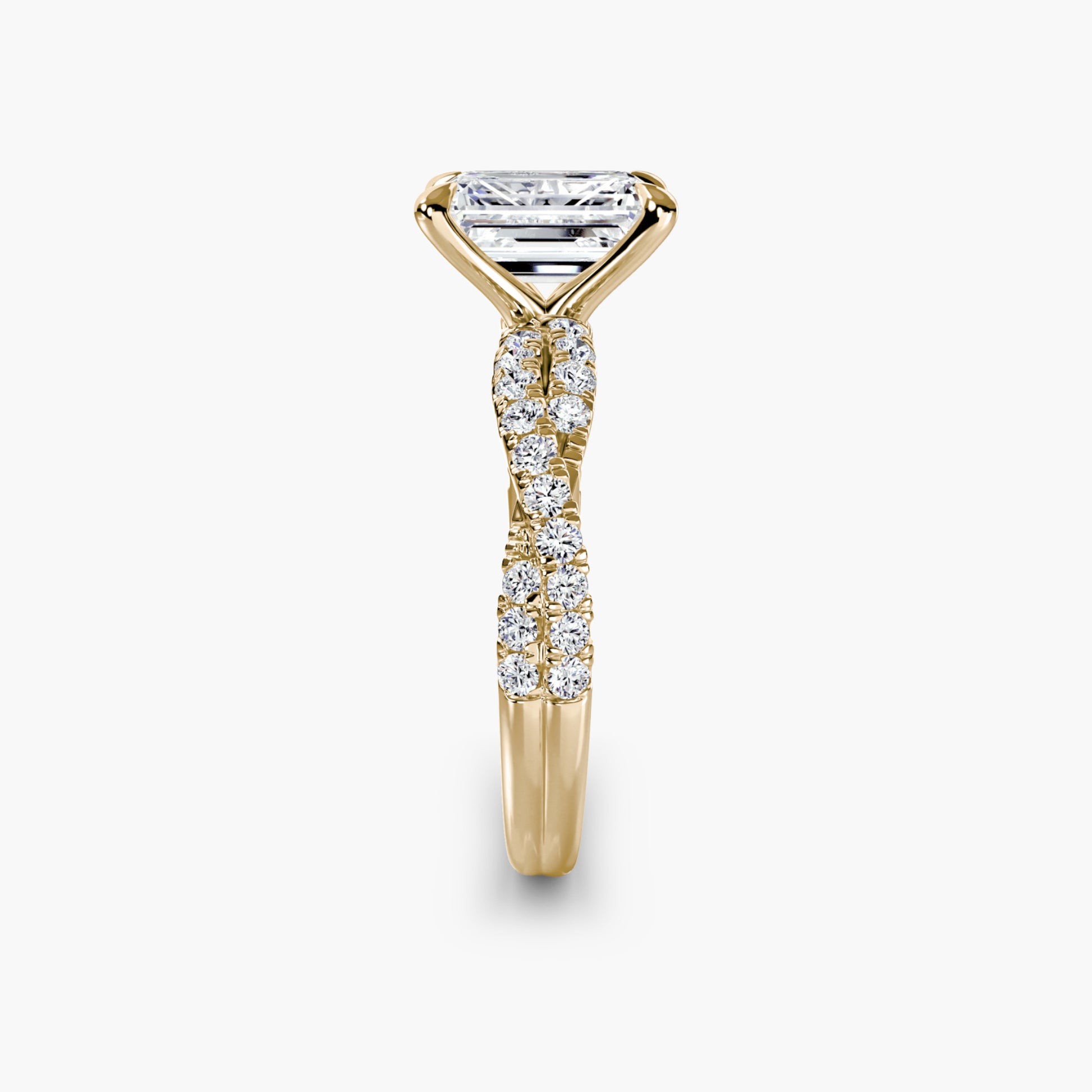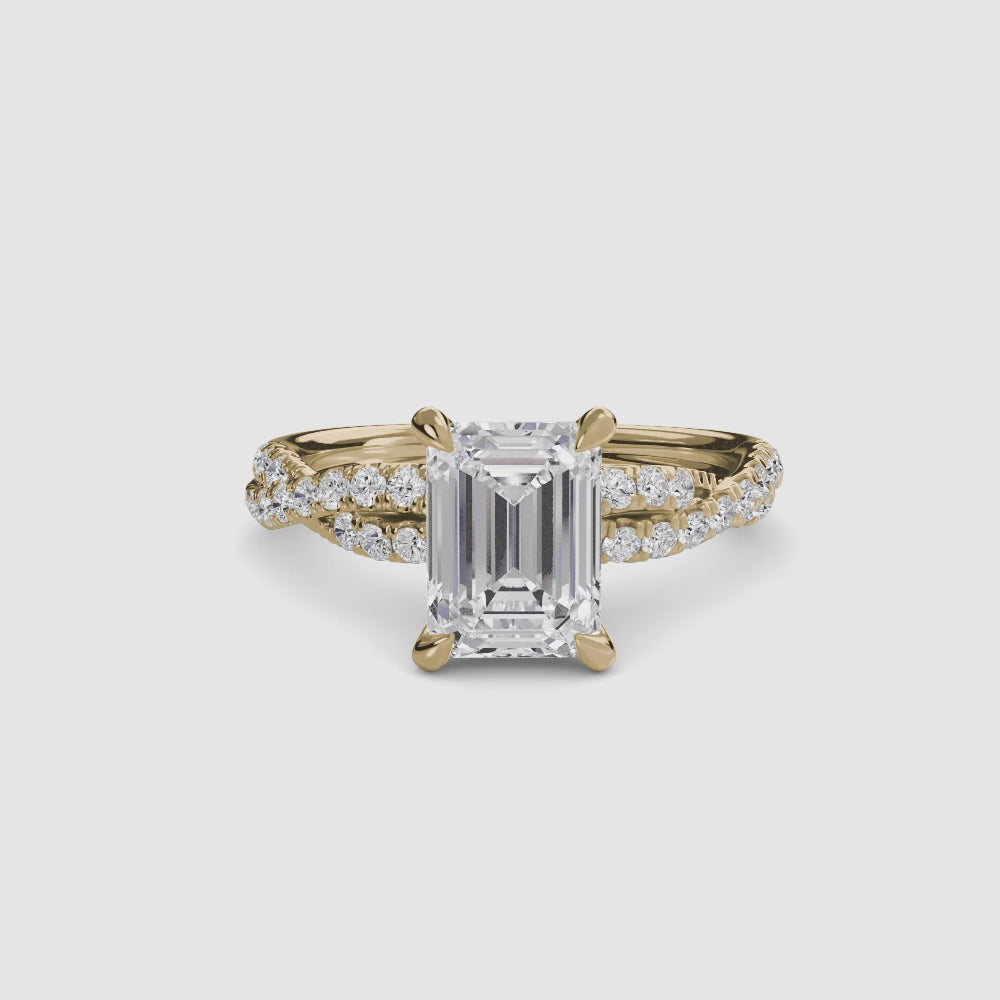 The Twisted Pavé Solitaire Emerald cut in Yellow Gold