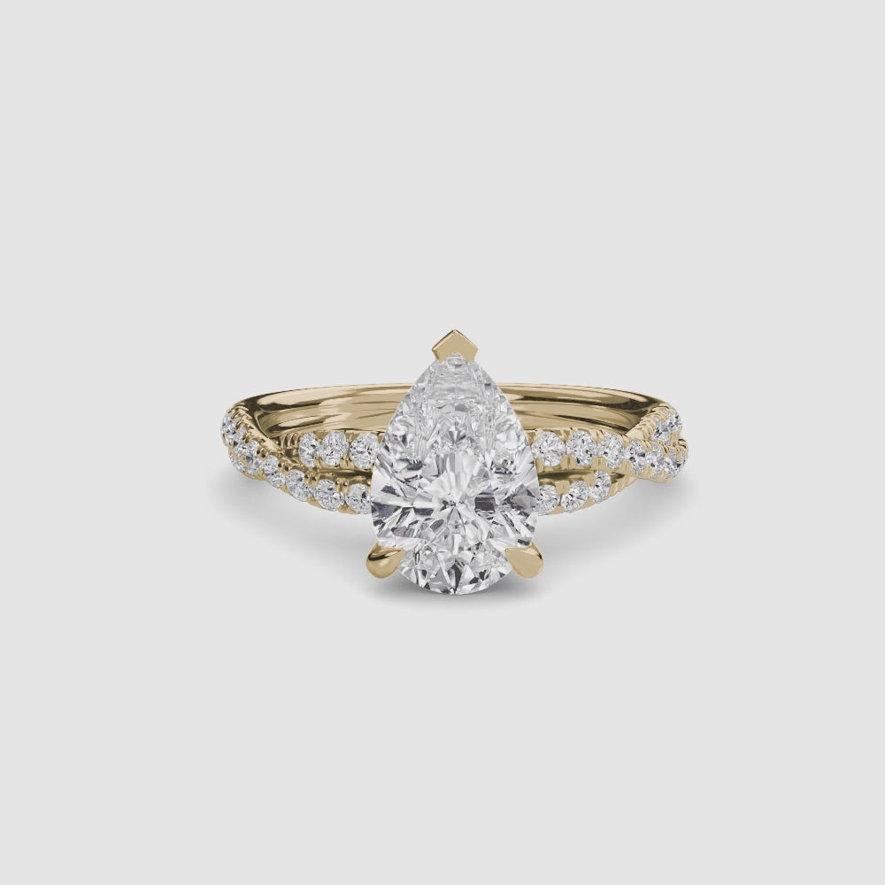 The Twisted Pavé Solitaire Pear shape in Yellow Gold