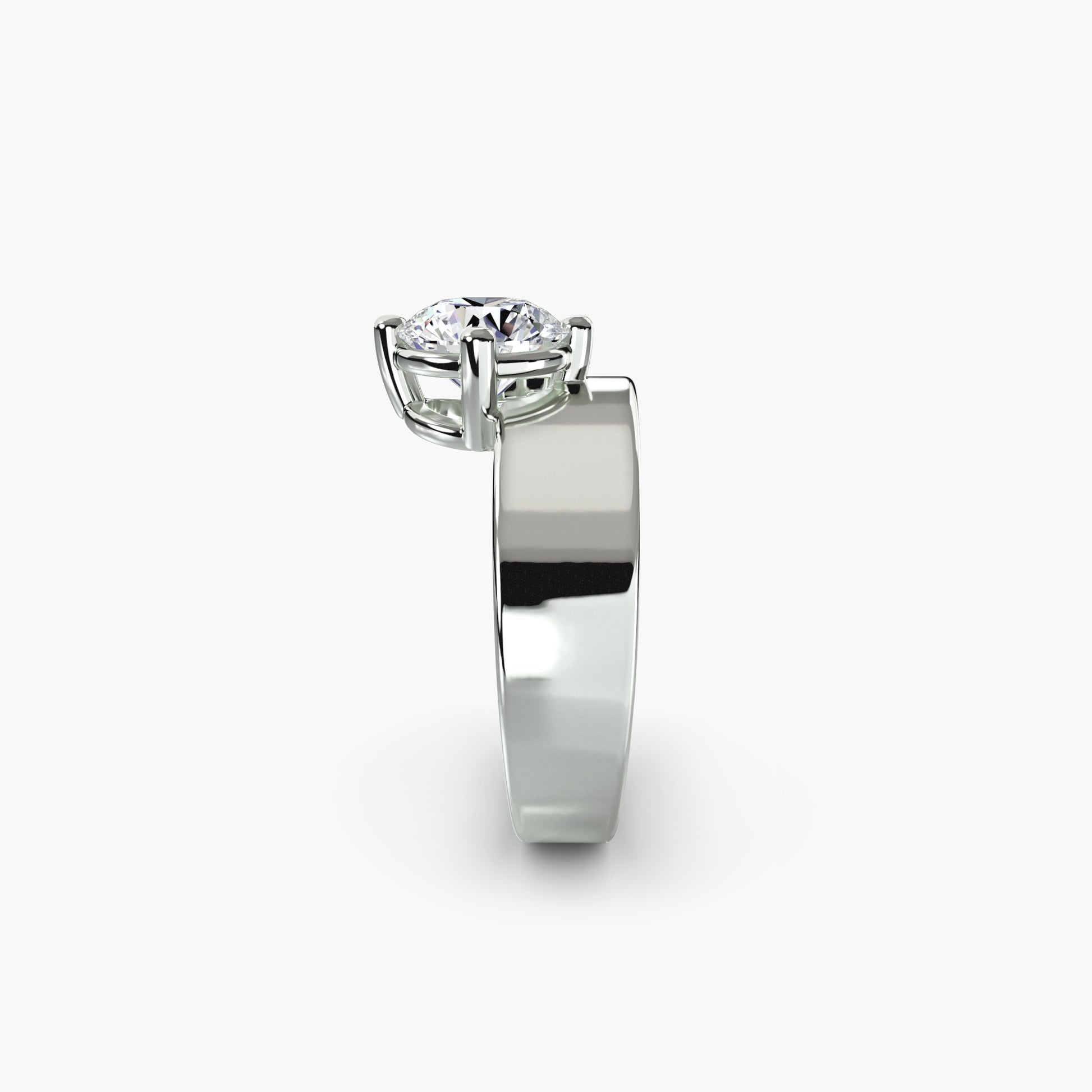 With a bold wide band, this solitaire ring makes a confident statement while highlighting the center stone with timeless elegance.