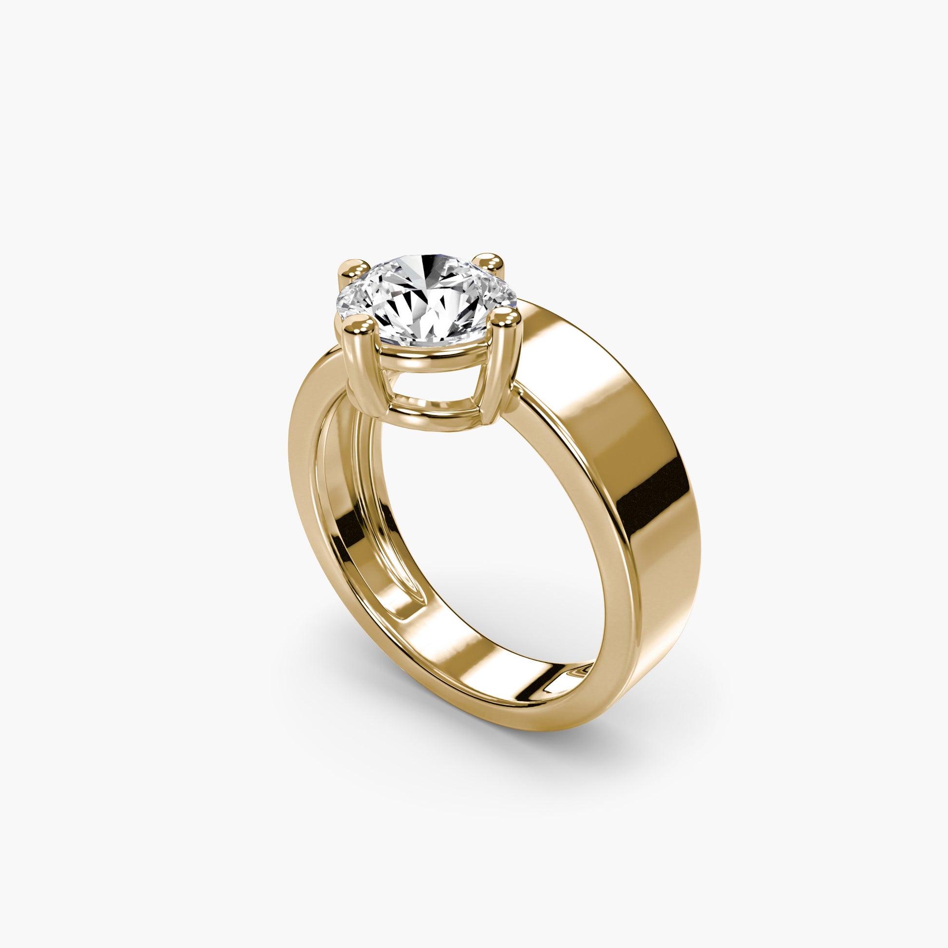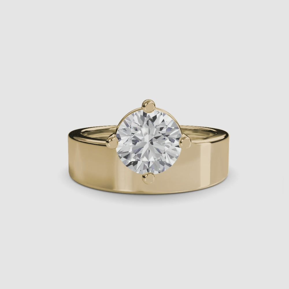Wide Band Solitaire in Yellow Gold